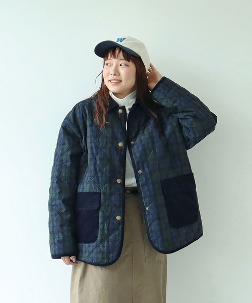 トラッドな印象のチェック柄が目を引く、2WAYハンティングブルゾン。ワークウェアなどに用いられる耐久性に優れたCORDURA®生地にキルティングを施したチェック柄は、スタイリングの主役にぴったりの存在感。無地側はドライタッチで洗いざらしたような、ふっくらと立体感のある生地を選びました。ガラリと印象の変わるリバーシブル仕様で、異なる雰囲気をお楽しみいただけます。中綿にはEVOdown®を使用。繊維内に空気を含ませることで保温性が高く、ダウンのような暖かさがあります。着疲れしない軽さも嬉しいポイント。襟とポケット、袖と裾口のパイピングにはふくらみのあるソフトな風合いのコーデュロイ素材を使用し、ヴィンテージ感のあるドットボタンでどこか古着のような雰囲気に仕上げました。上品さもありながらボーイズライクなコーディネートにはまります。アラン編みニットとウールボトムに革小物でとことんトラッドにまとめたり、ボーダーカットソーにデニムボトムでワークな着こなしもおすすめ。--------------------透け感:なし裏地:あり(リバーシブル)伸縮性:なし光沢感:なしポケット:あり--------------------【素材の特性・お取り扱いの注意】・取り扱いの注意については取り扱い表示をよくご確認の上、着用をお願い致します。・中綿の片寄りが出ますので、家庭での洗濯はお避け下さい。・素材の特性上、汗や雨などで濡れた時や強く摩擦が生じた場合に色落ちし、他の衣料に移染する事があります。白や淡色の衣類、バッグを合わせる際はご注意下さい。・直接日光や蛍光灯に長時間当てると変色する可能性がありますので、保管時はご注意下さい。また、色褪せ変色は経年変化によるものですのでご了承下さい。※撮影画像は、光の当たり具合やモニターの環境により色味が違って見える場合があります。あらかじめご了承下さい。※ベージュの画像はサンプルを着用しています。お届けする実際の商品と仕様、加工、サイズが若干異なる場合があります。ベージュのサンプルの画像から裏側(無地)の襟の反り返りが落ち着き、表側(チェック柄)の襟と同じ見え方になります。