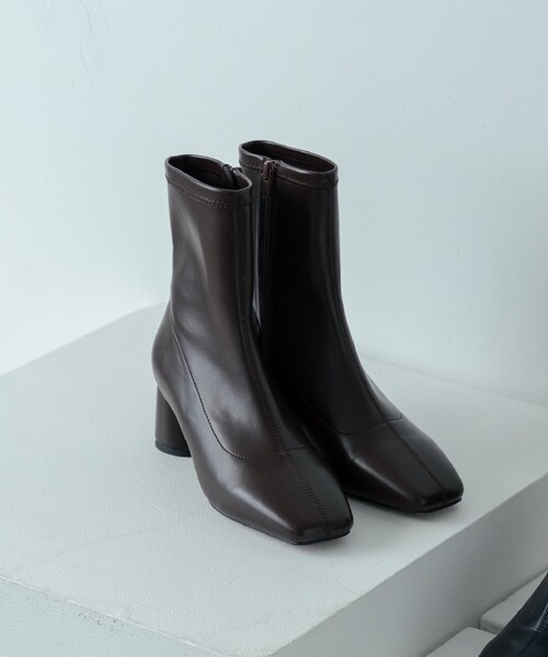 Design Pointスレッチのフィット感もあり、しっかりとした安定感のショートブーツ。やや丸みのあるスクエアトゥでカジュアルに、更にすっきりとしたフォルムが、どんなボトムにも合わせやすくデザインされています。丈感が使いやすくワンピースやスカートスタイルにも今年らしくマッチします。■サイズ表示について※バイイング商品のため下げ札サイズ表記とワールドサイズ表記が異なります。製品寸法をご確認くださいませ。ワールドサイズコード35=製品サイズ表記23.5=23.5cm相当ワールドサイズコード40=製品サイズ表記24=24.0cm相当※照明の関係により、実際よりも色味が違って見える場合があります。また、パソコン・スマートフォンなどの環境により、若干製品と画像のカラーが異なる場合もございます。店舗へのお問い合わせ商品番号:688-04023●製品寸法:35(23.5cm):ヒール高5cm40(24.0cm):ヒール高5cm備考:重量:片足約280g(サンプルサイズ)