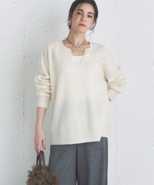 素材感の生きる上質なニット【point】・開きすぎないキーネックが今っぽく、さりげない抜け感を・肩を落としたゆる感のあるシルエット・少し毛足がありふわっとした素材感がベーシックをワンランクアップ・薄手でも軽くあたたか【fabric】・カシミア混のふわっとした肌触り・チクチクを感じにくい柔らかな質感透け感:淡色あり裏地:なし伸縮性:あり光沢感:なし生地の厚さ:普通【注意事項】・画像の商品はサンプルです。実際の商品と仕様、加工が若干異なる場合があります。・サイズ表記はあくまで目安となります。・取り扱いについては、商品についている品質表示でご確認ください。・照明の関係により、実際より明るく見える場合がございます。またパソコンなどの環境により、製品と画像のカラーが若干異なる場合がございますので、予めご了承くださいませ。■お気に入り登録がオススメです!■《商品のお気に入り登録》カラー・サイズ選択の横の「♡」をクリックで簡単に登録できます完売カラーの再入荷や在庫が1点になったとき、セールになったときに通知をお届けします《ブランドのお気に入り登録》ページ上部のブランド名の「♡ お気に入りブランドに追加」をクリックで簡単に登録できます新商品の情報やイベントなどお得な情報をいち早くお届けします是非、ご登録お願いします♪