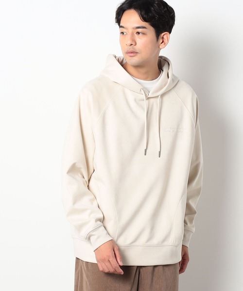 マットなマイクロファイバー起毛素材を使用した1枚でもインナーでも使える素材感がコーディネートのアクセントになるパーカー・デザイン脇にはポケットが付いていているので1枚で着用した時にも便利です。ラグラン袖になっているので袖周りにゆとりがあって着用しやすくなっています。胸には同色の刺繍をつけてアクセントにしています。・シルエット程良くゆとりのあるサイズ感で、アウターのインナーに着用するのもおすすめです。大き過ぎないサイズ感なので女性の方にもおすすめです。・ファブリックマットなマイクロファイバー起毛素材を使用しています。表面感があって手触りもよい素材感、見た目よりも軽いです。・スタイリングゆとりのあるシルエットで1枚で着てもインナーでも素材感がアクセントになりトレンド感のある着こなしに仕上がります。ダウンなどのアウターのインナーとして合わせると素材感が協調されてより新しい着こなしのアクセントにする事ができます。※ご家庭でのお洗濯可能な商品です。詳細、取り扱い方法は商品に付いている品質表示、アテンションタグをを御確認下さい。<商品お気に入りの登録>完売しているカラーの再入荷通知や、ラスト1点、セールの通知をお知らせいたします。<ブランドお気に入り登録>新商品や再入荷などいち早くブランドの情報を受け取ることができます。*****************裏地:なし伸縮性:あり光沢感:なし生地の厚さ:ややあり透け:なし*****************<スタッフ着用コメント>本社 Hさん身長:178cm/体重:66kg/体型:普通/普段サイズ:48(L)/着用サイズ:48(L)サイズ感:程よいゆとりで1枚でもインナーでも使えそう。素材感:質感が新しいく肌触りも良い着心地:見た目以上に軽い、そして暖かい。
