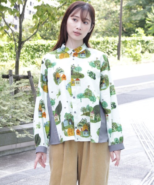 絵描き・イラストレーター サクマユウコさんとのコラボシリーズ。SUPER HAKKA定番のコットンビエラに、サクマさんのイラストをプリントしたブラウス。脇と袖口には別布をMIXし、こなれ感のあるデザインに仕上げました。Aラインの広がりを引き立て、シルエットをすっきりと見せてくれる1着です。『ある日の森の街』─心地良い時間─『木の葉の青い鳥』─小鳥たちのおしゃべり─サクマユウコ you-co sakuma絵描き・イラストレーター野生動物や木々や草花、こどもたちなどの自然界を、絵本の世界のようでありながら、カラフルだけど甘すぎない表現で描いています。個展・グループ展で年に数回作品を展示しています。お手入れ:手洗い 店舗へお問い合わせの際は、下記の品番をお申し付け下さい。 [品番:34150254]