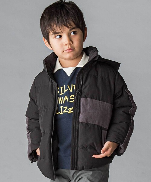 -25AW- 冬の外遊びも安心の暖かさ。遊び心とカッコよさを両立したウインタージャケット。 ■デザイン 袖のラインがアクセントになったスポーティデザインに、シャツコールの切替えでレトロムードをプラス。 シャツコールの切り替えがさりげなくお洒落な中綿ジャケットです。 同じ色味の素材違いで表現したメンズライクな1着。 ブラック×グレー、ネイビー×ネイビーの落ち着いた配色で、どんなコーデにも合わせやすい仕上がりです。 内側にはさりげないストライプテープをあしらい、見えない部分までもおしゃれにこだわったデザインです。 ■素材/機能 耐久性のある綿ナイロン素材に、暖かな中わたとさらっとしたタフタ裏地で快適さを実現。 フードはファスナーで着脱でき、シーンに合わせてアレンジ可能です。 雪遊びに役立つスノーガードや多機能ポケット付きで、冬の外遊びから通学まで頼れる一枚です。 ※両腰ポケット、左袖ポケット付きです。 25秋冬アイテム WINTER SPORTS -ウインタースポーツ- スキー、スノボーなどのウインタースポーツがテーマのコレクション。 まだまだトレンドが継続されている“レトロスポーツ” の要素を切り替えやカラーリングで取り入れてどこか懐かしくも新しいスタイリングを提案。HAPPY MEMORIES -楽しい思い出- “記憶に残るような楽しい思い出を写真に撮りためて大切に記録していく” がテーマのコレクション。 各月でそれぞれ男の子が楽しいと感じたシーンを表現し、レトロでクラシックなムードが魅力的などこか懐かしくも新しいスタイルを提案。 【 WASK(ワスク)】 WEEAGEDSAUCYKID「我々は小生意気な子供である・・・」 自由で遊び心満載な男の子たちへ アメリカンテイストをベースにその時々のトレンドや異なる要素をプラス エッジの効いたカジュアルスタイルをキッズウェアで表現