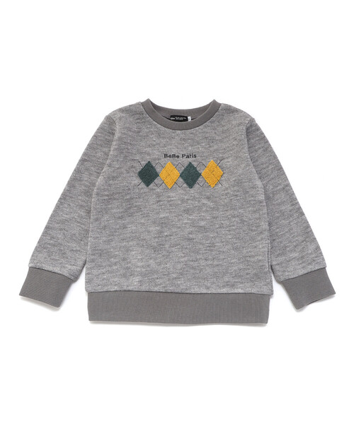 -25AW- ニットライクなカットソーを使用したレトロな雰囲気のトレーナー。 ■デザイン 濃淡が混じった温かみのある柔らかな杢調の生地を使用。 立体感のあるアーガイルのサガラ刺しゅうの配色が目を引きます。 一枚ではもちろんインナーにシャツなどを重ねてきてもかっこよくきまります。 カラーはくすみ感がおしゃれなブルーと落ち着いたグレーの2色展開。 秋冬らしいウォーム感をプラスできるアイテムです。 ■素材/機能 ニットのようなクラフト感とトレーナーのような気軽さで着られるニットカットソーを使用。 首ぐりと袖口はテレコ素材で切り替えてデイリー使いしやすい仕様になっています。 25秋冬 男の子アイテム 【10月テーマ 3 BOY】 - のんびりドライブ - 秋風を感じながらドライブしよう。 フォーレンダムはオランダの有名な村の一つ。 漁港があり可愛らしい家屋が並び、メインストリートの湖沿いでは冬でも暖かく日差しのまぶしい風景が広がります。 パッチワークやアーガイル柄を使用し深みのあるカラーリングのリラクシーでこなれ感のあるコレクション。 【2025年秋冬 シーズンテーマ】 -クルーズ・私の行く先- レストランやブティック・劇場・図書館にカフェまるでひとつの街のように巨大な架空の豪華客船での船旅をイメージしたコレクション。 上質さや品の良さをベースに遊び心や楽しさをプラスしたブルジョワシックなスタイルを提案します。 【BeBe(べべ)】 ”LOVE MODERN” 少しおませで、生意気なヨーロピアンカジュアルの提案。 時代性・流行性をとらえ、ベーシックでもワンポイントを施した遊び心、楽しさを盛り込んでいます。 シンプルだけど、こだわりのあるオリジナリティーを重視しています。