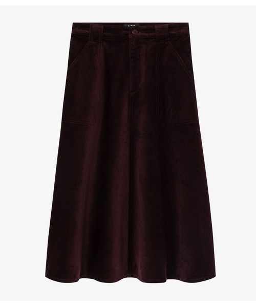 コーデュロイのフレアースカート. *フレアーカット. *ふくらはぎ丈. *ミドルウエスト. *ボタン留め. *ファスナー開き.