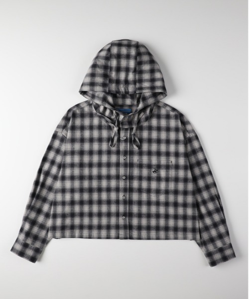 【BEVERLY HILLS POLO CLUB】フードシャツ (短丈/ルーズシルエット/ネルチェック/フード/シャツパーカー/レイヤード/保温性/軽やか/前立てボタン/カジュアル)