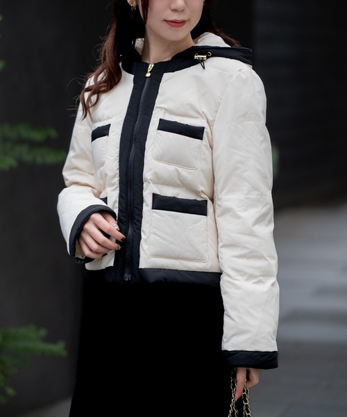 *パフィ―タフタ 昨年好評のふんわりとした軽さと、程よい光沢感が魅力的なバイカラーショートアウターが今年も登場。 ぷくっと膨らんだタフタ素材でフェミニンさもありつつ、配色ラインがシルエットを引き締め、メリハリのあるデザインに◎ フードが取り外し可能でノーカラーで辛口にも着用でき、中綿素材で気兼ねなく着られて、寒い季節もスタイリッシュに。 カジュアルすぎず、スカートにもパンツにもバランスよく合わせられるデザインで、通勤から休日のお出かけまで幅広く対応。上品なディテールと着心地を兼ね備えた、冬の新定番アウターです。 洗濯:ドライクリーニング 関連アイテム:45-12805 《お気に入り登録》はお得がいっぱい! 「商品」のお気に入り登録で、再入荷、ラスト1点、セールなどお得な通知を受け取ることができます。 「ブランド」のお気に入り登録で、新商品や再入荷などいち早くブランドの情報を受け取ることができます。 是非、この機会にご登録くださいませ。