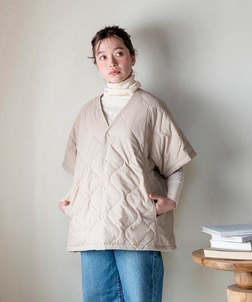 ユニセックスでお揃いも楽しめるハーフスリーブタイプのはんてん型羽織り 軽い着心地と、小さくたためるパッカブル仕様が特徴のはんてん型の羽織り。 ハーフスリーブタイプは作業や家事がしやすいのがポイント。 畳んでで付属の巾着に収納することができ、軽量で持ち運びしやすいので、キャンプなどのアウトドアにもおすすめです。 リバーシブルで使えるので、カラーの雰囲気を変えることもできます。 [サイズ] チェスト・バスト:96~112 男女兼用、対応身長:165~185(cm) 【DAN-暖纏:ダンテン】 日本伝統の生活着であるはんてんの形状や特徴を活かし、 今のエッセンスを加えた新たなスタンダードウェア。 ゆったりとした着心地、すっきりとした襟元。 重ね着しても窮屈にならないアールホーム。 作業や家事がしやすい袖丈。 家で過ごす時、外に出る時もさっと羽織れる。 わたしたちの生活に寄り添い いつも心地よくあたためてくれます。