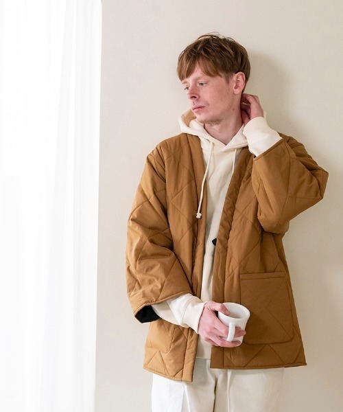 新しい冬の定番、はんてん型の羽織り【DAN-TEN】 軽い着心地と、小さくたためるパッカブル仕様が特徴のCOM-FLY/ コンフリー。 家族やパートナーと兼用もできるサイズ展開で、様々なライフスタイルに合わせてお使いいただけます。 節電意識が高まり冬の羽織需要が高まっている今日この頃。この冬は新しい冬の定番【DAN-TEN】を纏い、現代の半纏を着るというちょっとだけ時別な気分を味わいながら暖かく快適に過ごしてみませんか? 畳んで付属の巾着に収納することができます。軽量で持ち運びしやすいので、 キャンプなどのアウトドアにもオススメ。 リバーシブル仕様で裏表両面のカラーを楽しんでいただけます! カラー毎に違うデザインのキルティングが施されているのもポイントです。 [サイズ] チェスト・バスト:96~112(cm) 男女兼用、対応身長:165~185(cm) 【DAN-暖纏:ダンテン】 日本伝統の生活着であるはんてんの形状や特徴を活かし、 今のエッセンスを加えた新たなスタンダードウェア。 ゆったりとした着心地、すっきりとした襟元。 重ね着しても窮屈にならないアールホーム。 作業や家事がしやすい袖丈。 家で過ごす時、外に出る時もさっと羽織れる。 わたしたちの生活に寄り添い いつも心地よくあたためてくれます。