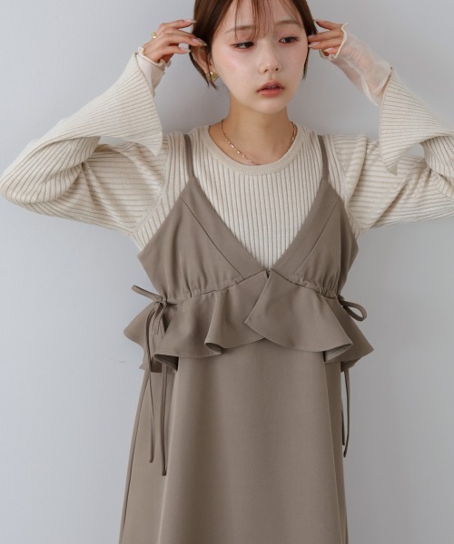 ●Bab● \体型やお好みに合わせてお選び頂けるS、M、Lの3サイズ展開!/ ■SIZE Sサイズ 着丈110cm Mサイズ 着丈115cm Lサイズ 着丈120cm 着丈が5cmずつ違います。袖丈も身長に合わせて調整しています。 【Sサイズ スタッフ着用コメント】 ・152cm 普通体型 Sサイズを着用しました。足首くらいの丈感でした。身幅部分を調整することができたので安心して着ることができました。 【Mサイズ スタッフ着用コメント】 ・158cm 普通体型 Mサイズを着用しました。くるぶし上くらいの長さでした。合わせるインナーによっては季節を問わずに使える生地感でした。これからたくさん着まわしたいです。 【Lサイズ スタッフ着用コメント】 ・168cm 普通体型 Lサイズを着用しました。足首くらいの丈感でショートブーツと合わせるとブーツの表面がしっかり見えるくらいの長さでした。 ■POINT クロスデザインの上身頃と、ウエストのフリルが印象的なペプラムキャミワンピース。まるでビスチェのような立体的なシルエットで、女性らしい華やかさを引き立てます。モカ・ベージュ・ブラックの落ち着いたカラーバリエーションで、大人フェミニンな雰囲気にぴったり。リボンで身幅を調整できるので、体型やシーンに合わせてきれいなラインを楽しめます。 ■FABRIC なめらかな質感と程よいストレッチ性が魅力のワンピースです。上身頃裏地はポリエステル100%で安心感があり、さらりとした着心地を叶えます。 ■COORDINATE インナーにシンプルなブラウスやリブニットを合わせて、ジャケットを羽織ればきちんと感のあるスタイリングになります。足元はパンプスやブーツで上品に、フラットシューズでリラックス感を出すのもおすすめです。カーディガンやシアートップスをレイヤードして、ガーリーフェミニンに仕上げるのもおすすめ。 ………………… 透け感:ベージュのみ:ややあり(同系色のペチコートの着用をお勧めします。) 裏地:上身頃部分のみ:あり 洗濯:クリーニングネットをご使用ください ………………… ※撮影環境により、多少実際のカラーと異なる場合がございます。また、携帯やスマートフォン、パソコンなどの画面上と実物では多少色が異なって見える場合がございます。ご了承下さいませ。 ※画像の商品はサンプルのため、実際の商品と若干仕様が異なる場合がございます。 ※濃色品は、過度な摩擦や濡れた状態での摩擦により、色落ち・色移りをする恐れがあります。 ※この商品は、素材の特性上、洗濯の際に多少の伸びや縮みが生じる恐れがあります。洗濯後は形を整えてから干してください。 ※その他お取り扱いに関しましては、商品に付属のアテンションタグをご覧ください。 ★商品のお気に入り登録 再入荷やラスト1点のお知らせ、セール情報などお知らせを受け取ることができます! ★ブランドのお気に入り登録 新商品や再入荷などのお得な情報を受け取ることができますので、是非ご登録ください。 ★Bab公式Instagramアカウント【bab.showroom】で最新情報をチェック!
