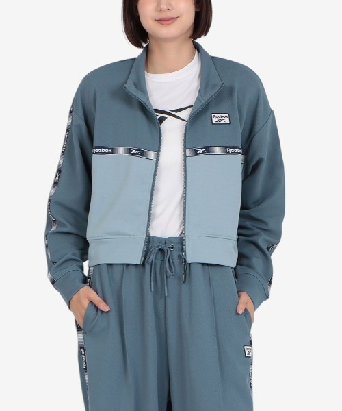 【Reebok公式ショップ】◇日本人モデル:身長169cm B85 W59 H90 体重49kg/モデル着用サイズMショート丈のシルエットが特徴的なクロップドトラックジャケット。袖や胸元に施されたラインディテールがスポーティなアクセントになっています。軽やかな着心地で、トレーニングからタウンユースまで幅広く活躍する一枚です。※画像はサンプルのため、色味やサイズ等の仕様に変更がある場合がございます。※光の当たり具合や閲覧環境によって実際の色味と異なって見える場合がございます。