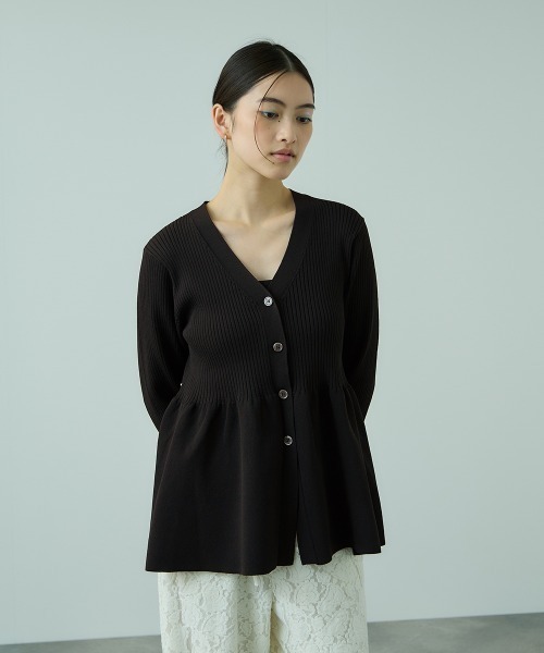 ●POINT ブラウスやカットソーなどで人気のペプラムシルエットのニットカーディガンです。 ペプラムデザインはウエストまわりがもこもこしにくく、また、気温が上がる日中には、こもりがちな空気を逃しやすいのも嬉しいポイントです。 気温が高い日には、キャミソールなどのインナーでニットトップスとして、気温が落ち着いて着たら、ハイネックのカットソーやニットとのレイヤードスタイルで保温性を高めた着合わせがおすすめです。 軽量でシワにもなりにくく、イージーケアでロングシーズンご着用が可能な嬉しい一枚です。 ---------------------------------- 透け感:なし 厚さ: やや厚い 伸縮性:あり 裏地: なし ポケット: なし ---------------------------------- ---------------------------------------------------------------- 洗濯方法 家庭洗濯:液温は30℃を限度とし、手洗いができる。 自然乾燥:日蔭の平干しがよい。 アイロン:底面温度120℃を限度としてアイロン仕上げができる。 ドライクリーニング:石油系溶剤による弱いドライクリーニングができる。 ---------------------------------------------------------------- ■モデル身長 165cm 着用サイズ M ※画像の商品はサンプルとなりますので実際の商品と仕様、加工、サイズが若干異なる場合がございます。 ※お客様のモニター環境により実際のお色と多少異なる場合がございます。 ※撮影状況や光の当たり具合により、色合いが異なって見える場合がございます。 ---------------------------------- ▼商品のお気に入り登録 ハートマークをクリックし、お好きなカラーを選んでお気に入りに登録 完売カラーの再入荷通知や、ラスト1点の通知、セールの通知も受け取ることができます。 ▼ブランドのお気に入り登録 新商品や再入荷等、いち早くブランドのお得な情報を受け取ることができます。 ----------------------------------