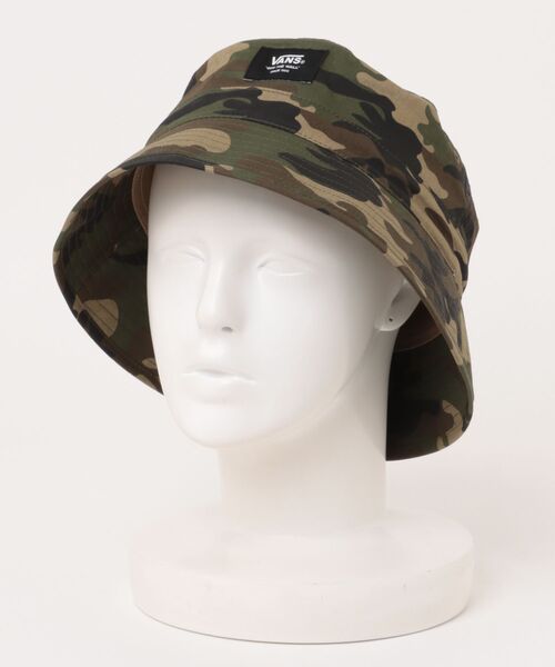 カムフラージュ柄のコットンツイルを使用したバケットハット。ブリムの角度を立てることで顔に当たる紫外線を極力カットする事が可能。クラウン前面に織りネームを縫い付けたシンプルなアートワーク。クラウン内側にスポーツメッシュの裏地を貼りました。クラウン両サイドにハトメ穴かがりを開けることで通気性を確保。スベリの裏側にはベルクロでサイズ調整が可能なアジャスターが付属。