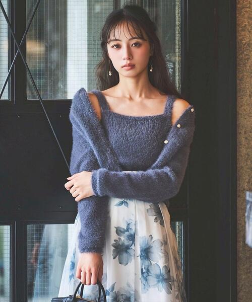 【ふんわりと柔らかな質感のフェザーニットアンサンブル】【Point】・フェザーの柔らかな質感が女性らしさを引き立たせ、秋のシーズンムードを高めます。・カーディガンを少し落とした抜け感のある着こなしもおすすめです。・カーディガンとキャミソールニットのアンサンブルなので、セットオンでもオフにも使いやすいアイテム。ケア方法:手洗い透け感:なし裏地:なし伸縮性:あり光沢感:なし生地の厚さ:厚手F:(00):【カーディガン】着丈 42㎝/バスト 84㎝/肩幅 31.5㎝/袖丈 55㎝/天幅 18.5㎝/アームホール21㎝/裾幅 31㎝ 【インナー】着丈 50㎝/バスト 66㎝/裾リブ丈 8㎝/裾幅 28.5㎝