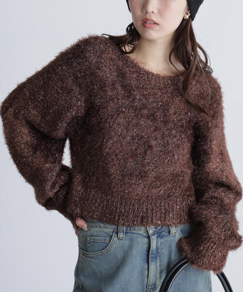 昨シーズンご好評いただいたニットが、新色ブラウンを加えて再登場!フェザー糸とラメのフェザー糸を引きそろえたショート丈ニットです。ニット自体はボリュームがありますが、ショート丈で身幅はゆったりとした着やすいサイズ感です。肌ざわりもやわらかくストレスフリーな着心地です。デニムを合わせるとカジュアルで可愛いスタイルに。スラックス、ショートボトムスと合わせると、キレイめフェミニンな雰囲気にも着回せます。※モデルの着用画像の場合、光の当たり具合により、実際の色味と異なって見えることがございます。色味は、商品単体の画像をご参照ください。商品特性■透け感:なし■生地の厚さ:普通■裏地:なし■伸縮性:あり■光沢:あり■シルエット:スタンダード---------------------------------------------------◆商品のお気に入り登録◆お気に入りアイテムの値下げ・再入荷・在庫1点などの通知を受け取ることができます。◆ブランドのお気に入り登録◆新商品や再入荷、セール、クーポン配布などお得な情報を受け取ることができます。---------------------------------------------------