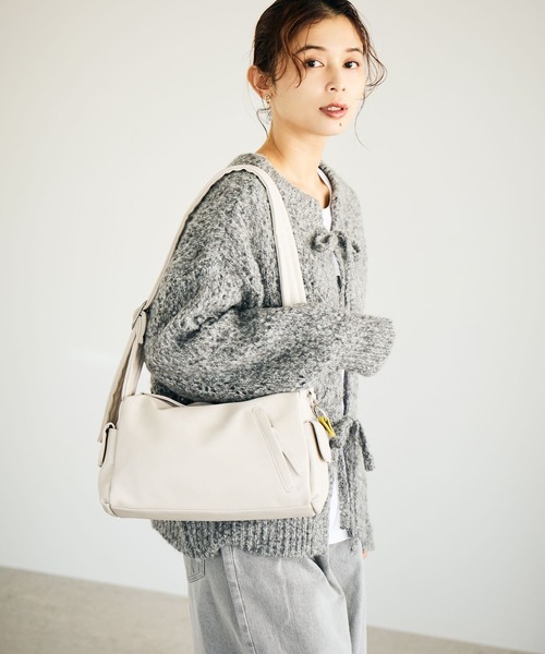 人気のからだよろこぶシリーズから秋の新作が登場!収納力抜群なショルダーバッグーーー【素材】本体:合成皮革【デザイン】コーデを選ばず普段使いしやすいデザイン。充実の8ポケット仕様で、荷物を綺麗に収納できるだけでなく出し入れも楽々◎トレンドのチャームなどが付けられるカラビナ付きで、ブラック・アイボリー・カーキのベーシックなカラー展開も魅力です。ーーー【からだよろこぶポイント】・本体は軽い素材を使用している為とことん軽さにこだわった作り。・太めのショルダー紐は荷重を分散させる効果あり、肩にかかる負荷を軽減。・底面を体に沿うようにカーブさせ、本体を体にフィットさせやすい構造に。【仕分けに便利な8ポケット】・内側には小物類を仕分けしやすいポケット付き。・スマホなどの収納に便利なファスナーポケット。・両サイドにフラップポケット、背面側にもポケット付き。