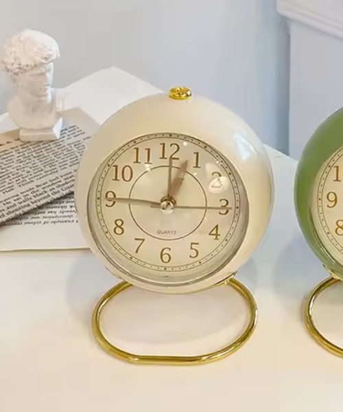 【 ammy. / エイミードット 】 ゴールド リング ラウンド 置時計 丸みのあるクラシックな文字盤と華やかなゴールドリングのスタンドが 印象的なゴールドリング ラウンド置時計♡ コンパクトなサイズ感で、デスクやベッドサイド、リビングなど幅広く使えます! シンプルながらも上品なゴールドのアクセントが空間をおしゃれに演出☆ 韓国インテリアや北欧テイストのお部屋とも相性抜群です♡ アラーム機能付きなので、目覚まし時計としても活躍してくれます◎ ※単3電池1本使用(別売り) ※撮影・モニター環境等により実際の商品の色味と異なって見える場合がございます。 【インフォメーション】 ◆商品のお気に入り登録 完売カラーの再入荷通知を受け取ることができます。 ぜひご登録ください♪ ◆ブランドのお気に入り登録 新商品や再入荷などのお得情報を受け取ることができます。 ぜひご登録お願いします