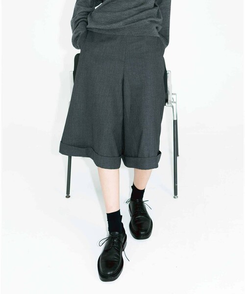 <デザイン>- 裾をロールアップしたバミューダパンツ- ゆとりのあるサイズ感- ジップフライ- サイドポケット×2<素材>- ウール混のポリエステルレーヨンの織地- 適度なハリ※着用、お取り扱いの際は商品についておりますアテンションタグ、洗濯ネームを必ずご確認ください。※モデル撮影画像は、光の当たり具合やパソコンなどの閲覧環境によって、実際の色味と異なって見える場合がございます。商品の色味は商品単体で撮影した詳細画像をご参照ください。メーカー品番:mld wool brmd pantseunoia | ユノイア2014年に設立された韓国のブランド。‘’eunoia‘’はギリシャ語で「美しい考え」という意味。韓国の彫刻、建築、陶器、瓦などによく見られる、なだらかな曲線からインスピレーションを受け、黒と白を基調とした繊細なスタイルを表現。豊かなシルエットとクラシックかつユニークな、美しいスタイルを展開しています。