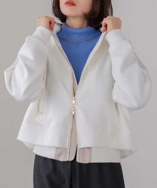 ■POINT レイヤードしたような着こなしになるアウター。短めのアウターの着丈がトレンドのクロップド丈なので、羽織るだけで足長に見せてくれてスタイルUPが叶うアイテムです。キレイめなカットソー素材を使って、ところどころMA-1デザインがちりばめられているので程よいMIXコーデに仕上がり、カジュアルはもちろん、きれいめスタイリングのあえての外しの着こなしにもオススメです。カットソー素材なので、伸縮性がある分着心地もよくラクに着て頂けます。 ■FABRIC サラッとした素材感で表面が滑らかでキレイめな印象のダンボール素材。カジュアルデザインでもキレイめな印象で着て頂けるアイテムです。 ………………… 透け感:なし 裏地:身頃のみあり ………………… ★商品のお気に入り登録 登録すると、完売しても再入荷時に通知を受け取ることができます。 ほかにもお得な特典があるかもしれません♪ ★ブランドのお気に入り登録 新商品や再入荷などの情報を受け取ることができますので、是非ご登録ください♪
