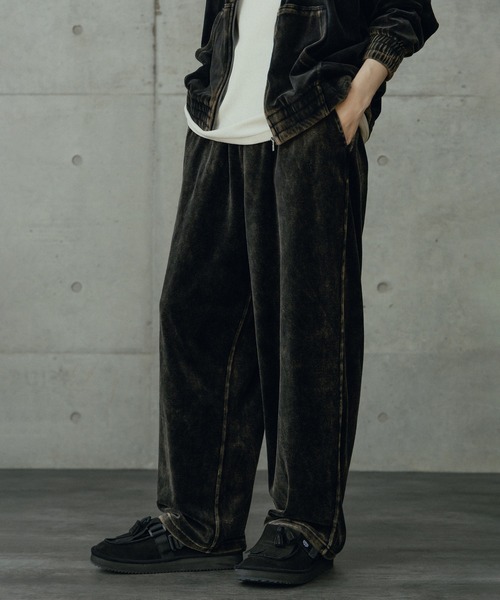 【上品な光沢とヴィンテージ感!ベロアトラックパンツ】上質なコットンベロアにパウダー加工を施し、ヴィンテージライクな風合いと奥行きのある光沢感を両立させた一本です。《リラックス感と上品さを両立》柔らかく肌触りの良い素材で、リラックス感のある穿き心地ながら、上品なムードも漂う仕上がりです。 大人のストリートスタイルにもマッチします。《着回し力抜群の存在感》セットアップはもちろん、単品使いでも存在感を発揮するトラックパンツです。【Rattle Trap/ラトルトラップ】時代と共に変化し続けるライフスタイルにおいてリアルに共存することができるタウンウェア。『ワーク』『ミリタリー』『デニム』をベースに素材とディティールにこだわりを持ちながら今を表現。【画像に関するご注意】※画像はサンプルです。仕様が変更になることがありますのであらかじめご了承ください。※商品の色味につきまして、お客様のお使いのPCのモニター環境、設定により実際のカラーと画像の色味が違って見える場合が御座います。予めご了承の上、ご注文下さい。※屋外での撮影画像は光の加減で、実際の商品より明るく見える場合が御座います。商品の色味は生地アップ・スタジオ撮影の画像をご参考下さい。