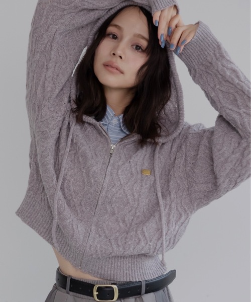こなれ感たっぷりの柔らかニットを立体感のあるケーブルデザインに編み立てたニットフーディーが登場。前を閉めても、サッと羽織っても可愛いすっきりシルエットが魅力です。ミックスカラーの糸を使用し、コーデのポイントになりつつも着回しやすいカラーに。ふわっとかぶりたくなるフードや胸元のゴールドチャームなど細部までこだわりの光るアイテムです。