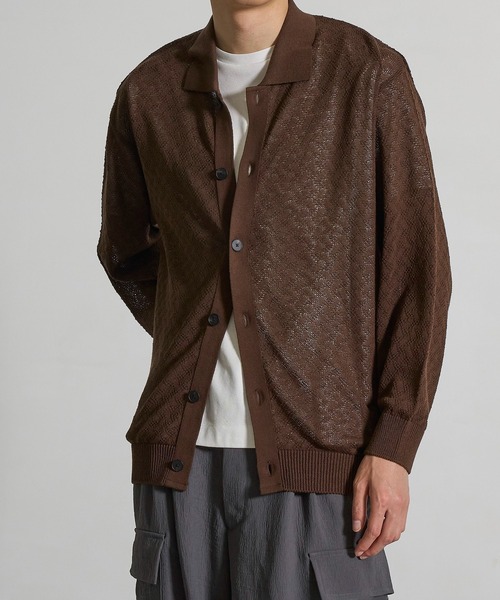■デザインややリラックスしたシルエットのポロカーディガン型。ベースに細かい幾何学模様のレース編みでさり気ない透け感のある編地。程良い透け感で嫌味の無い丁度良さがポイント。暑さの残る季節に半袖Tシャツにサラッと羽織っても、ロンTに釦を留めてレイヤードして着ても、温度調整やスタイリングのアクセントとしてもロングタームで使えるオススメアイテム。■素材コットンアクリルの強撚糸。さらりとした清涼感と毛羽の少ない肌触りの良さが特徴。・裏地:なし・伸縮性:あり・光沢感:なし・生地の厚さ:普通■お手入れ方法・手洗い推奨【THE TOKYO】ファッションを楽しむ大人をターゲットに高感度なN.HOOLYWOOD、White Mountaineering、COMME des GARCONS HOMMEなどの日本ブランドを拘りセレクトしているセレクト型コミュニティストア。■商品のお気に入り登録(♡をクリック)・ラスト一点、再入荷、セール時の通知を受け取れます。・クーポンやタイムセールの通知を受け取れます。・お気に入り商品を一覧でご覧になれます。・実店舗でのショッピングでもお役に立ちます。■ブランドのお気に入り登録・新作やイベントなどブランドのお得な情報を受け取れます。