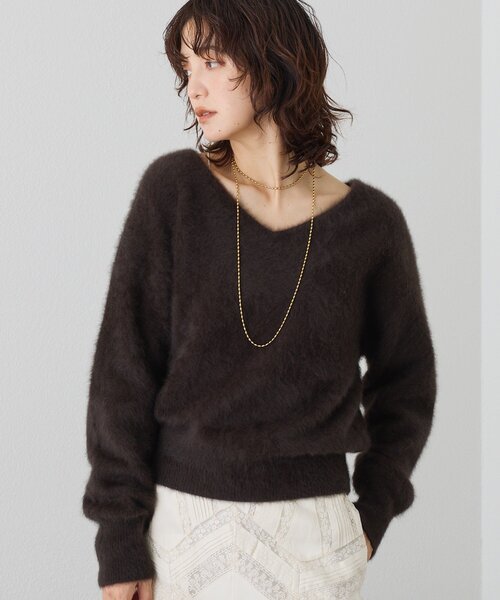 ファーのような素材感がぬくもりをプラス●デザイン・昨年人気のファーヤーンニットが、カラーをリニューアルしてリバイバル。・フワフワとした毛足が華やか。ファーのようなソフトで心地よい肌触りも魅力たっぷり。・衿ぐりはVネックとボートネックの2WAYで着用可能。 どちらのネックラインも女性らしいヌケ感があり、首元や顔まわりをスッキリ美しく演出してくれます。・インしなくても決まりの良い着丈、ルーズなニュアンスのある袖丈でこなれて見えるデザイン。・シンプルなデザインでカジュアルから華やかなシーンまで幅広く対応可能なのもポイント。・非常に軽く暖かで、真冬は大活躍するアイテム。●素材毛 92% カシミヤ 8%・フワフワの毛足とカシミヤ混のならではの軽くソフトな風合いの素材を使用洗濯方法:ドライクリーニング透け感:なし裏地:なし伸縮性:あり生地の厚さ:-光沢:ややあり▼商品の詳細情報はブログで解説▼ --------------------------------------------------------------------------------【お買い物をもっと便利に楽しく♪】『♡』をクリックでお気に入り登録✓「商品のお気に入り登録」で・・・ラスト1点や再入荷の通知が届きます。登録して頂いた商品だけが対象となる、あなただけのタイムセールが開催されることも!✓「ブランドのお気に入り登録」で・・・新商品や再入荷など、いち早くブランドのお得な情報を受け取ることができますので、ご登録をおすすめします!--------------------------------------------------------------------------------【注意点】※画像の商品は光の照射や角度、お使いのモニター環境により、 実物と色味が異なる場合がございます。※入荷状況により、お届け予定が前後する場合があります。※お客様への発送が店頭販売より遅れる場合もあります。※追加生産商品は、一部の店舗、通販で販売中の場合がございます。 予めご了承下さい。----------------------------------------------------------------------
