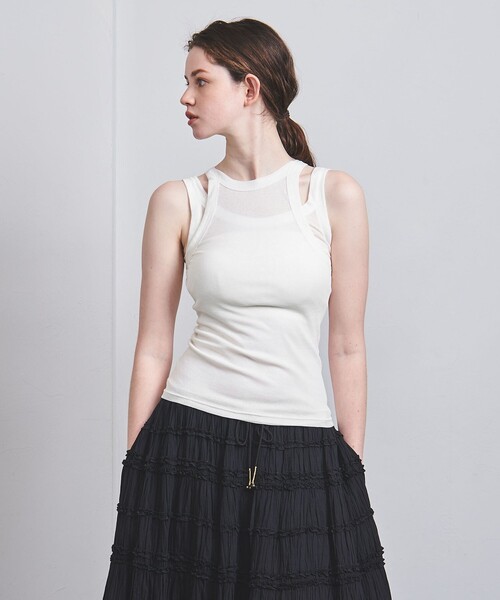 薄く柔らかなベールをまとうことで、体にも心にも心地良い一枚を目指したシリーズ 「Hedy(へディ)」■デザインネックをUとY字型のデザイン違いで組み合わせた、レイヤードタンクトップ。バックのセンターシームがニュアンスを与えながら、背中部分にチャーム、裾にスリットを施した表情豊かなアイテム。それぞれ単品でもお使いいただける、汎用性の高さも魅力です。重なり合うことで奥行が生まれ、シアーな美しいコンビネーションを手軽にお楽しみいただけます。■素材コットンを使用し薄手で繊細なガーゼ状のテレコ生地に編み立てることで、しなやかで柔らかく、なめらかな肌触りが特徴です。無染色で洗い加工のみ施しました。■コーディネート一枚着はもちろん、薄手の素材のためインナーとしてもおすすめです。シンプルなデザインでボトムスも選ばず、シャツやジャケットのインナーとしても映える万能な一品。・同素材で色違いのご用意もございます。対象品番:89176990010・89176990011============================裏地:なし透け感:あり伸縮:あり光沢感:なしケア方法:手洗い可============================<Pheeta(フィータ)>2019年デビューの「繋ぐ服」をコンセプトにした東京ブランド。世界中の継承すべき希少な技術や、家族に引き継がれるような特別な服を、価値観を共有する仲間と共に繋いでいく事を願っています。手のかかる、まるで生き物のようなも物作りは伝承される中で文化を育み愛情を生んでいきます。大切な一着を人から人へ繋いでいけるために。【注意事項】※商品を使用前に、タグ等に記載されている「取り扱い上の注意書き」、「洗濯表示」を必ずご確認ください。※商品画像は、光の当たり具合やパソコンなどの閲覧環境により、実際の色味と異なって見える場合がございます。あらかじめご了承ください。※商品の色味の目安は、商品単体の画像をご参照ください。※画像の商品はサンプルです。店舗へお問い合わせの際は、全国のUNITED ARROWS各店舗まで下記の品名/品番をお申し付けください。品名:PH013C-CU2 (Hedy) 品番:89176990009