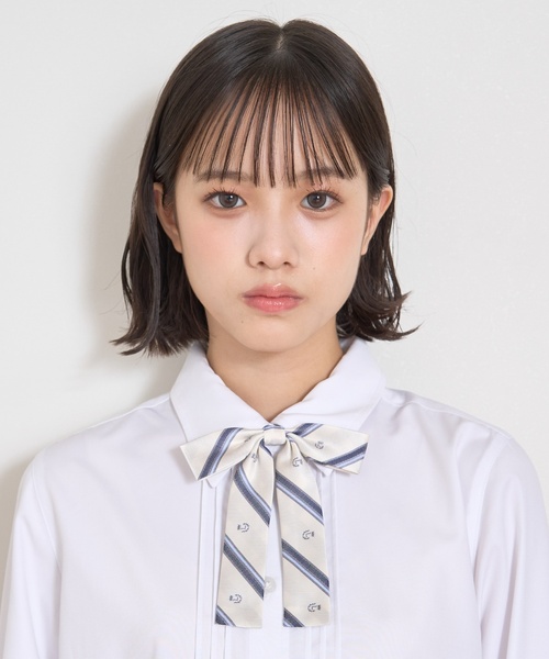 細めのデザインで上品な雰囲気を演出するリボンタイです。扱いやすいワンタッチ仕様で、簡単につけ外しできます。アジャスターつきのゴム紐を備えており、長さの調節が利くのもポイント。カーディガンやベストなどを合わせた、清楚系のスタイリングにおすすめです。