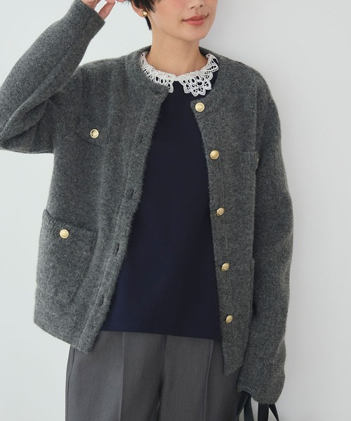 大人の上品カジュアルニットジャケット ■サマ美えとは? シンプルながらもこだわりのシルエットで美しさを追求した、着るだけでサマになるシリーズ。 お家でのお手入れのしやすさも備わり、いつでもサマ見えコーデを支えてくれます。 《嬉しい機能》 1. 抗菌防臭 気になるにおいを防いでくれるので汗をかいても安心。 【デザイン】 ・ふんわりとやわらかな糸を使用し、思わず触れたくなるあたたかみのあるニットジャケット。 ・中空糸を一緒に編み込み、ニットでもジャケット見えする程よいボリューム感をプラスしたのがこだわり。チャコールはさりげなく表情のある表面感に仕上げたのもポイントです。 ・ベーシックなクルーネックシルエットに金釦とポケットデザインがポイントになり、上品な印象に。 ・普段のジャケットよりはカジュアルに見せてくれるけどだらしなくない、こなれニットジャケットです。 【コーディネート】 ・合わせるアイテムでONでもOFFでも活躍。 ・オフィスカジュアルにはレースデザインのインナーやブラウス、スラックスを合わせてきれいめにまとめるのがおすすめ。 ・デニムやデコルテがすっきりとしたインナーを合わせればカジュアルコーデに◎ ・羽織としても、ボタンを閉めてトップスとしても着用でき着回し力も抜群です。 【サイズ展開】 Mサイズ Lサイズ LLサイズ モデル身長:166cm 着用サイズ:Mサイズ 【洗濯・取り扱い】 洗濯:洗濯可 アイロン:可 乾燥:タンブル乾燥不可 ------------------------------------- 透け感:なし 伸縮性:あり 厚み:厚手 裏地:なし 洗濯:可 -------------------------------------- ※撮影時のライティング、ご覧になっているモニター・PC環境により実際の商品と色味が異なって見える場合がございます。ご了承の上お買い求め下さい。