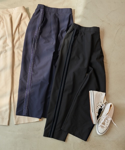 こなれて見える 大人のカジュアルラインパンツ ■エブ楽とは? Everyday 「楽」に着れるシリーズ。 365日毎日着たくなるような、着心地もお手入れも楽ちんな味方服。 《嬉しい機能》 1. 洗濯機で洗える(マシンウォッシャブル) 汗をかいても、汚れてしまっても安心。デイリー使いにぴったり。 【デザイン】 ・ハリのあるジャージー生地で、なめらかな履き心地が魅力のサイドラインパンツ。 ・フロントタックとサイドラインデザインで縦のラインを演出。脚のラインを拾わないのでスタイルアップに活躍します。 ・スポーティーな印象を与えてくれるサイドラインはベロア素材にすることで、程よく上品に、カジュアルになりすぎないようにしたのがこだわりです◎ ・イージーデザインでバッグゴムの仕様なので着心地も抜群。 【コーディネート】 ・レースやフリルなど女性らしいアイテムやジャケットなど、きれいめなアイテムを合わせたスポーツMIXコーデがおすすめ。簡単なのに一気にこなれたスタイリングにまとまるのが嬉しい◎ ・程よくすっきりとしたシルエットなのでオーバーサイズのニットとも相性抜群。キャップやナイロンバッグなどカジュアルな小物を合わせれば統一感のあるコーディネートに。 【サイズ展開】 Mサイズ Lサイズ LLサイズ モデル身長:162cm(ベージュ×ブラックニット)/168cm 着用サイズ:Mサイズ 【洗濯・取り扱い】 洗濯:洗濯可 アイロン:可 乾燥:タンブル乾燥不可 ------------------------------------- 透け感:なし 伸縮性:ややあり 厚み:普通 裏地:なし 洗濯:可 -------------------------------------- ※撮影時のライティング、ご覧になっているモニター・PC環境により実際の商品と色味が異なって見える場合がございます。ご了承の上お買い求め下さい。 ※カラー名:ベージュの商品タグにはLグレーと表記がございますが、商品に相違はございません。予めご了承くださいませ。