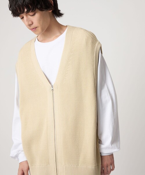 レイヤーが楽しくなるニットベスト■デザインニットベストとバルキーな糸を立体感のあるリブ編みがベストマッチした一着。Vネックの空き具合に拘り、ルーズに見えないように丁寧に仕上げ、スタイリッシュな印象へ落とし込みました。大人が着れる上品さとリラックスシルエットが魅力です。■コーディネートニットベストはシンプルなスタイリングのをワンランクUPするためのマストアイテム。Tシャツからシャツまで合わせられる万能さが魅力。前を開けてインナーを見えるスタイルもおすすめです。同シリーズでカーディガンの(対象品番:42686990013)展開がございます。============================裏地:なし透け感:なし光沢感:なし機能性:なしケア方法:ドライクリーニング============================<CITEN(シテン)>〜FUTURE ESSENTIALS.〜これからの良い服って、なんだろう。Long Lifeで、快適で、いろんなライフスタイルにもフィットする服ではないでしょうか。そんな服をカタチにするために必要なエッセンスで構成されるブランド「CITEN」。素材や機能を丁寧に選ぶ、Well - Choice。着る人が大切に使えるような工夫を凝らす、Well-Design。価格を超えた価値を提案する、Well-Price。Wellの積み重ねから、Well-Madeな服へ、そして着る人の暮らしに欠かせない服へ。「CITEN」は新たな時代の、新たな視点・支点・始点です。【注意事項】※画像の商品はサンプルです。※商品を使用前に、タグ等に記載されている「取り扱い上の注意書き」、「洗濯表示」を必ずご確認ください。※商品画像は、光の当たり具合やパソコンなどの閲覧環境により、実際の色味と異なって見える場合がございます。あらかじめご了承ください。※商品の色味の目安は、商品単体の画像をご参照ください。店舗へお問い合わせの際は、全国のCITEN各店舗まで下記の品名/品番をお申し付けください。品名:リブニットZIPベスト 品番:42686990015