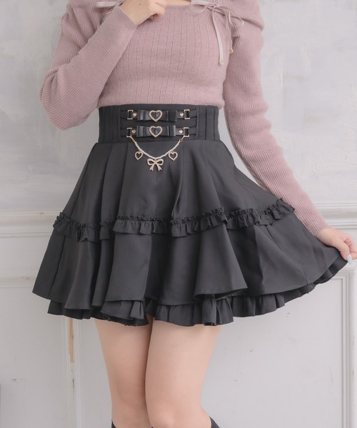 ♡ROJITA 2025 AW collection♡♥Design一目惚れ級のウエストデザインで、とびきり可愛く♡ウエストのリボンベルトに並ぶハートバックルと、ゆらゆら揺れるチャームが特別感をプラスします。ボリューム感のあるティアードフリルがふんわり広がって、女の子らしさ満点のシルエットに◎♥StylingトップスをINして着るだけで、簡単にあざと可愛いスタイルが完成します♡ボリュームのあるシルエットなので足元はシアーソックスなどにしてスッキリ見せるとバランスよいコーデになります♪商品のお気に入り登録♪ 完売カラーの再入荷通知や、ラスト1点の通知、セールの通知など商品の情報をいち早くGETできます♪ブランドのお気に入り登録♪新商品や再入荷等、いち早くROJITAのお得な情報をGETできます♪ 照明の関係で、実際のお色味と若干異なる場合がございます。また表示のサイズ感と実物は若干異なる場合もございますので、予めご了承ください。