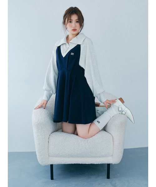 カジュアルなディテールの中に甘さをちりばめた、ミニ丈スウェットワンピース。ハーフジップやラグランスリーブでラフなムードを出しつつ、袖はふんわりと丸みのあるパフスリーブに。ハイウエストの切り替えでスタイルアップを叶え、大きめにデザインした襟が可愛らしいアクセントに。カレッジ風配色が目を引くNVYに加え、FURFURらしいニュアンスカラーのGRY・LIMEを揃えた、遊び心のある一着です。透け感;なし裏地;なし伸縮性;あり光沢感;なし生地の厚さ;普通※照明の関係により、実際よりも色味が違って見える場合があります。またパソコン・スマートフォンなどの環境により、若干製品と画像のカラーが異なる場合もございます。予めご了承ください。商品の色味は、商品単品画像をご参照下さい。 ※商品画像はサンプルのため、色味やサイズ等の仕様に変更がある場合がございますので、予めご了承ください。