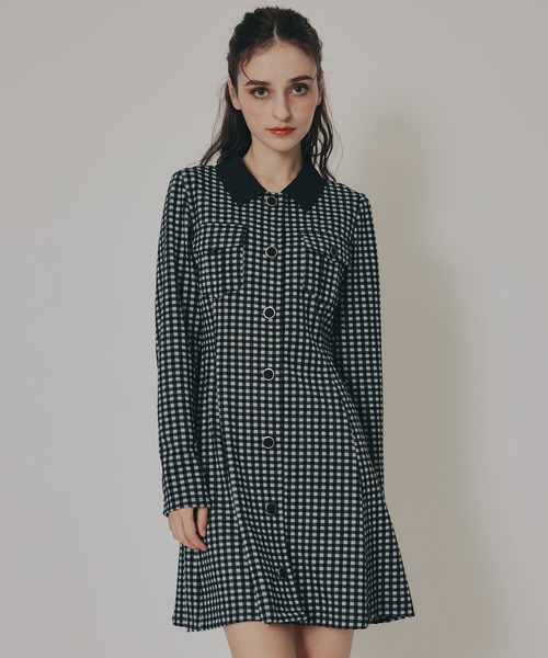 1枚で旬映え、スタイルアップも叶うミニ丈ワンピクラシカルなチェック柄が目を惹くジャガードミニワンピース。シンプルながらも存在感のある1枚に仕上げました。配色の襟とフロントのボタンがアクセントになり、きちんと感とトレンド感を両立。胸元のフラップポケットがデザイン性を高めつつ、ウエスト位置を高く見せてスタイルアップ効果も。カットソーならではの伸縮性のある生地感が着心地の良さも叶えました。タイツやロングブーツを合わせた秋冬らしい着こなしで、主役級のコーディネートが完成します。透け感:なし裏地:なし伸縮性:あり生地の厚さ:普通F:着丈83cm 身幅45cm 肩幅36cm 袖丈61cm ウエスト67cm
