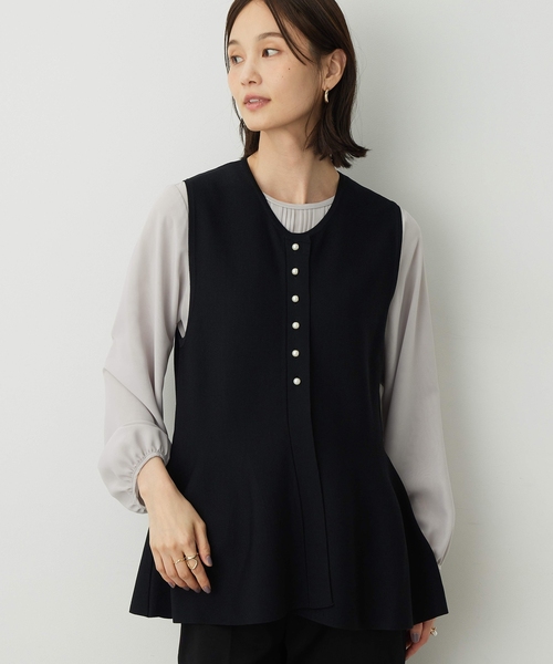 《フロントのパール調が煌びやかなアクセントになるベスト》 パール調のデザインがレディライクなムードを演出するベスト。 裾に向かって広がるシルエットになっており、ふんわりとした立体感をプラスします。 レイヤードスタイルも楽しめる広めの袖ぐりがポイント。 いつものコーディネートにプラスした着こなしがおすすめです。 【デザインポイント】 ・上質な素材とハリのある編みたてが高級感を醸し出します。 ・アームホールを広めにとり、冬にニットとも合わせやすくしました。 ・ペプラムシルエットが腰周りをカバーし自然にスタイルアップできます。 ----------商品情報---------- [着用目安]春、夏、秋、冬、通年 [裏地]なし [透け感]なし [伸縮性]あり ---------------------------- 【サイズバリエーション】 ・Mサイズ(9号相当) ・Lサイズ(11号相当) 【着用シーン】 入学式、入園式、卒業式、卒園式、授業参観、セレモニー、新生活、オケージョン、フォーマル、結婚式、二次会(2次会)、披露宴、お呼ばれ、パーティー、食事会、同窓会、発表会、通勤、仕事、デイリー、ショッピング、女子会、旅行、行楽、お出かけ、ディナー、ランチ会、記念日、デート、学校行事、オフィスカジュアル 【ブランド紹介】 《A/C DESIGN BY ALPHA CUBIC(エーシーデザインバイアルファキュービック)》は通勤時やオフィスで、学校行事や“おうちの用事”などのオケージョンで、女性が気張らずに心地良くいるための服を提案するブランドです。 【お買い物をお得にもっと楽しんで頂くために】 ▼商品のお気に入り登録▼ 完売カラーの再入荷通知や、ラスト1点の通知、プライスダウンしたセール通知も受け取ることができます。 ▼ブランドのお気に入り登録▼ 新作や再入荷等、いち早くブランドのお得な情報を受け取ることができます!