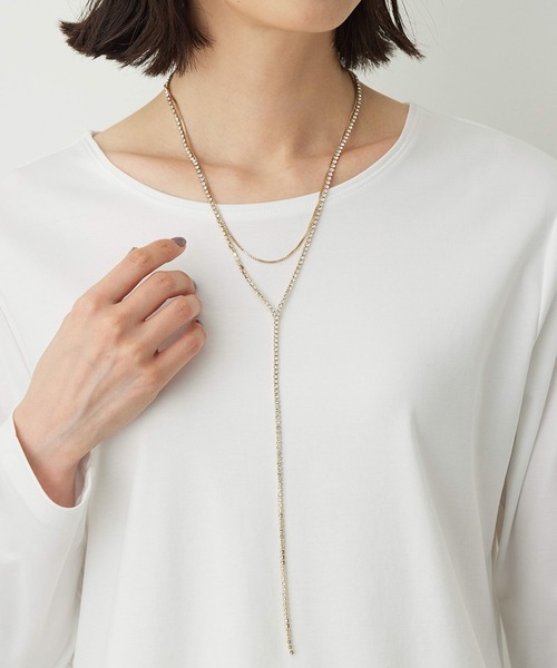 《煌びやかなクリスタルが施されたネックレス》 エレガントさ漂うクリスタルが施されたネックレス。 チェーンをレイヤードしたようなデザインなので、アイテム1つで華やかな首元を演出します。 長さ調整できるアジャスター付きがポイント。 いつものコーディネートのアクセント使いや、ちょっとしたお呼ばれシーンにも活躍するアイテムです。 【デザインポイント】 ・縦ラインを強調するデザインですらりとスタイルアップ。 ・シンプルなのでオフィスシーンや食事会などかしこまった場にもフィット。 ・ハイネックニットとの合わせも素敵です。 ----------商品情報---------- [着用目安]春、夏、秋、冬、通年 ---------------------------- 【サイズバリエーション】 ・フリーサイズ 【着用シーン】 入学式、入園式、卒業式、卒園式、授業参観、セレモニー、新生活、就活、リクルート、オケージョン、フォーマル、結婚式、二次会(2次会)、披露宴、お呼ばれ、パーティー、食事会、同窓会、発表会、通勤、仕事、デイリー、ショッピング、女子会、旅行、行楽、お出かけ、ディナー、ランチ会、記念日、デート、学校行事、オフィスカジュアル 【ブランド紹介】 《A/C DESIGN BY ALPHA CUBIC(エーシーデザインバイアルファキュービック)》は通勤時やオフィスで、学校行事や“おうちの用事”などのオケージョンで、女性が気張らずに心地良くいるための服を提案するブランドです。 【お買い物をお得にもっと楽しんで頂くために】 ▼商品のお気に入り登録▼ 完売カラーの再入荷通知や、ラスト1点の通知、プライスダウンしたセール通知も受け取ることができます。 ▼ブランドのお気に入り登録▼ 新作や再入荷等、いち早くブランドのお得な情報を受け取ることができます!