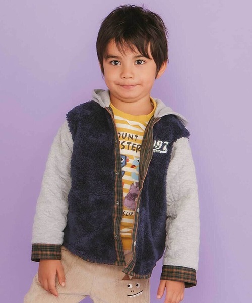-25AW- チェックとボア素材のリバーシブルで、気分に合わせて着こなしを楽しめる男の子用ジャケット。 ■デザイン 配色のフードがおしゃれなデザイン。 フードにはチェックの恐竜トサカ付きで、遊び心たっぷり。 ポケットにはおめかしした恐竜さんのワッペンをオン! 裏には触って楽しいポコポコのサガラ刺しゅうで1997のナンバリングをあしらいました。 ホックで開け閉めできるから、着脱も簡単で便利です。 おしゃれと楽しさを両立した、寒い季節にぴったりの一着。 通園・通学はもちろん、休日のお出かけにもおすすめ! カラーはグリーン系とベージュ系の2色展開です。 ■素材/機能 秋冬にぴったりな表側のチェック生地が季節感をプラス。 裏側はボア+キルト素材の袖で見た目もあったかさもばっちり。 25秋冬アイテム 【2025年10月のテーマ / Wonder & Grace】 好奇心の輝きに優雅なときめきを 毎日がワクワクでいっぱいの子どもたちは、無限の好奇心を持つ小さな探検者。 そんな遊び心に、ちょっぴり大人っぽいおめかしをプラスして、 楽しい毎日も、特別なキラキラの日も、すべてを包み込むようなスタイルを提案します。 【2025 AUTUMN / WINTER Plaid&Play-秋色チェックと遊ぶ-】 伝統的なチェックにビビットなカラーや子どもらしいモチーフをミックス。 動きやすく着心地のいい素材とシルエットで秋の落ち葉の中や秋風吹く中でも思いっきり遊んで冒険しよう。 【SLAP SLIP(スラップ スリップ)】 ~子どもの欲しいをカタチに~ ヨーロッパのこどものように 子どもらしい今しか着れないナチュラルなかわいさを提案 どこか上品で清楚感漂うフレンチカジュアルは いつものコーディネートをさりげなく格上げ