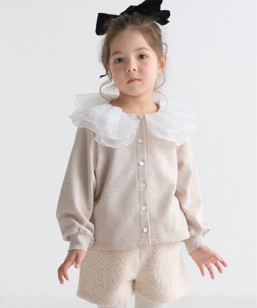 [100-130]もあります くるくるプードル素材が可愛いジャケットです。 スパンコールのブレードとフロントのフリルがポイント。 クリスマスのお出かけやオケージョンにもぴったりです。 同素材のボトムとセットアップのスタイリングや、 デニムなどカジュアルなアイテムとのスタイリングもおすすめです。 ● maarook (マルーク) 2009 A/Wよりスタートしたベビー + キッズ + おとな服 size: 70 ~ 150cm F(160cm) かわいいだけじゃない、 シンプルなだけでもない クールだけどちょうどいいバランスの服をつくっています