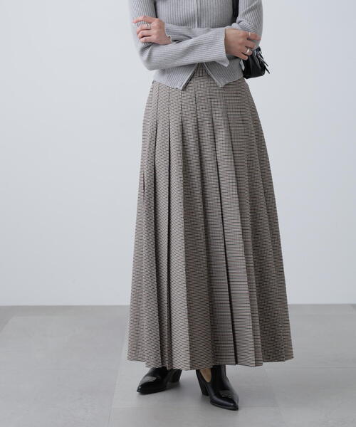 何にでも合わせやすいTR素材のプリーツロングスカート。柔らかく落ち感があり、広がりすぎないキレイなシルエットです。ロング丈で大人も着用しやすくなっています。後ろウエストはゴム仕様でストレスフリなはき心地。ベルトループが付いているので、お持ちのベルトを合わせるとウエスト調整できます。コンパクトトップスをINしてベルトを合わせると、コントラストのある今年らしい着こなしに。ニットを合わせたキレイめスタイルも楽しめます。シンプルな杢グレーと秋らしい小チェック柄のアソート展開。※モデルの着用画像の場合、光の当たり具合により、実際の色味と異なって見えることがございます。色味は、商品単体の画像をご参照ください。商品特性■透け感:なし■生地の厚さ:普通■裏地:なし■伸縮性:なし■光沢:なし■シルエット:スタンダード---------------------------------------------------◆商品のお気に入り登録◆お気に入りアイテムの値下げ・再入荷・在庫1点などの通知を受け取ることができます。◆ブランドのお気に入り登録◆新商品や再入荷、セール、クーポン配布などお得な情報を受け取ることができます。---------------------------------------------------