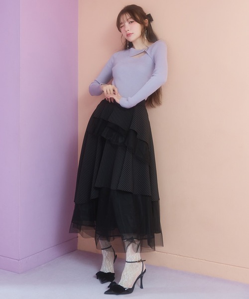 要望多数…ついにブラックストライプ&無地が新登場! REDYAZELらしいフェミニンさとモード感を両立したチュールレイヤードティアードスカート。立体感のあるティアードシルエットに軽やかなチュールを重ねることで、動くたびに表情豊かな揺れを楽しめます。カジュアルなスウェットやニットと合わせればデイリーに、ブラウスやジャケットを合わせれば特別なシーンにも活躍。シーズンレスで着回せる万能アイテムです。 透け感:なし 裏地:あり 伸縮性:なし 生地の厚さ:やや薄手 F:スカート丈90cm ウエスト65/75cm