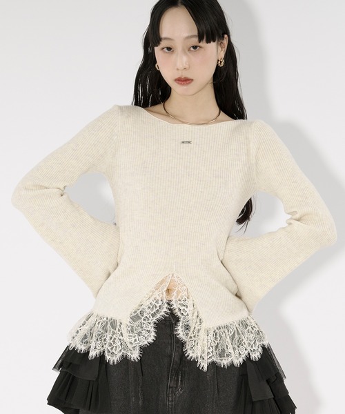 "Ezick"新色追加:アイボリー/ライトブルー【design】裾にレースを施した美シルエットなリブニット。柔らかなリブ素材で、肌なじみの良いニット素材です。裾のカット部分が、ウエストラインをさりげなく魅せ、スタイルアップします。ドッキングされたレース生地は、レイヤードスタイルに映えるデザインに。ボートネックで顔周りをスッキリと見せ、大胆なフレアスリーブで華奢感を演出します。フロントにはシルバーのエジックのメタルプレートがアクセントに。一枚やレイヤードスタイルもできる万能アイテムとなっております。【stylingitem】・2way tulle layered メタリックティアードスカート(595713)・pleats middle skirt ダブルウエストプリーツスカート(601965)--------------------------------------------------伸縮性/あり厚み/普通裏地/なし透け感/なし---------------------------------------------------※商品名とタグの記載名が異なる場合がございますが、商品に問題はございません。※サンプルにて撮影をしておりますので、実際の商品とは色味・仕様や加工・サイズ等が若干異なる場合がございます。予めご了承くださいませ。※商品の取り扱い方法につきましては、タグ等に記載されている「取り扱い上の注意」「洗濯表示」をご確認ください。※屋外での撮影画像は、光の当たり具合で色味が違って見える場合があります。あらかじめご了承ください。なお商品の色味は、スタジオ撮影の画像をご参照ください。 ....................≪INFORMATION≫......................▶Ezick(エジック)これからの時代を生きる女性が、自分らしさをもっと自由に楽しみ、磨き上げていくためのレディモードブランド。今の気分をMIXさせながらも自分らしさを表現できる、女性の等身大の美しさと憧れを提案します。-オフィシャルInstagramにて最新情報や限定情報を毎日更新中!-▼ 商品のお気に入り登録 ▼完売カラーの再入荷やラスト1点、またプライスダウンしたセール通知を受け取ることができます。ぜひご登録ください。▼ ブランドのお気に入り登録 ▼新商品や再入荷など、ブランドのお得な情報をいち早く受ける事が出来ます。ぜひご登録ください。※ご注文いただいた予約商品のお届け時期の確認は、注文履歴ページより行えます。