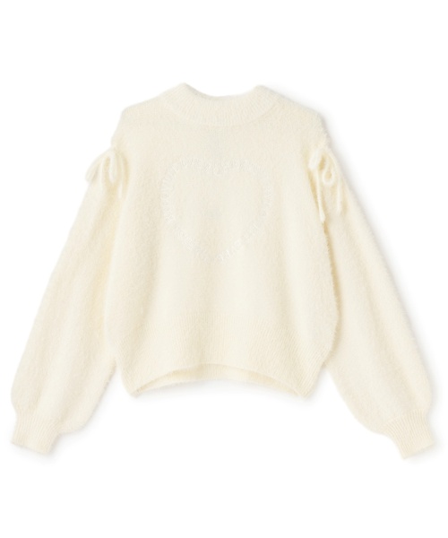 起毛感のある生地を使用したやわらかな手触りのニットです。胸元に大きくあしらったハート型のロゴ刺しゅうが魅力的。肩にはスリットを入れており、さりげない肌見せが叶います。女の子らしいフリルスカートや、明るいカラーのボトムと好相性です。【透け感】やや透ける【生地の厚さ】普通【伸縮性】あり【裏地】なし【ポケット】なし【アジャスター】なし