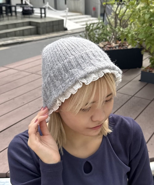 レースがガーリーな雰囲気のニットハット深めに被れるデザインがトレンド感のあるニットハット。ニット素材が暖かいだけでなく、コーディネートに季節感を感じさせます。深めに被れるので、小顔効果も期待できます。カジュアルなコーディネートに合わせたスタイリングがオススメです。[Point]○コーディネートをワンランクアップするファッションアイテム○トレンド感のあるデザインでお洒落見え間違いなし