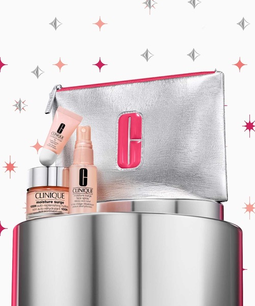 ■■肌タイプを選ばないオールスキンタイプ■■ \大切な方へ潤いのプレゼント/ 【ホリデイ ボックス付】トータル保湿ケア セット いつものスキンケアはもちろん、メイクの上からや、たっぷり塗布して5分間マスクとしても使える、クリニーク独自の「アロエ発酵コンプレックス*1」と、ヒアルロン酸*2を配合した、 ロングセラーのピンクの保湿ジェルクリームに、乾きを感じたらシュッとひと吹き「フェース スプレー」とデリケートな唇を瞬時に潤す「リップ トリートメント」がセットに。 トータルケアで、みずみずしい"保水美肌"へ。 【セット内容】本体価格:5,940円(税込) ※約9,700円(税込)相当 ◎モイスチャー サージ ジェルクリーム 100H (保湿ジェルクリーム/現品) 50mL ○モイスチャー サージ フェース スプレー (保湿フェース スプレー) 30mL ○モイスチャー サージ ハイドロ プランプ リップ トリートメント (保湿リップ トリートメント) 7mL ※オリジナル ポーチ付 ○はギフトサイズ *1 アロエベラ葉多糖体・乳酸桿菌培養溶解質・アロエベラ葉エキス:保湿成分 *2 ヒアルロン酸Na:保湿成分 ※なくなり次第、終了。※表示価格は希望小売価格です。 ----------------------------------------------- CLINIQUEの【♡お気に入り】登録で最新情報をお知らせ! ----------------------------------------------- ・アイテムを【♡お気に入り】に追加 再入荷/ラスト1点/予約開始などお知らせ ・ショップを【♡お気に入り】に追加 新商品/再入荷/イベント/ノベルティ企画などお知らせ