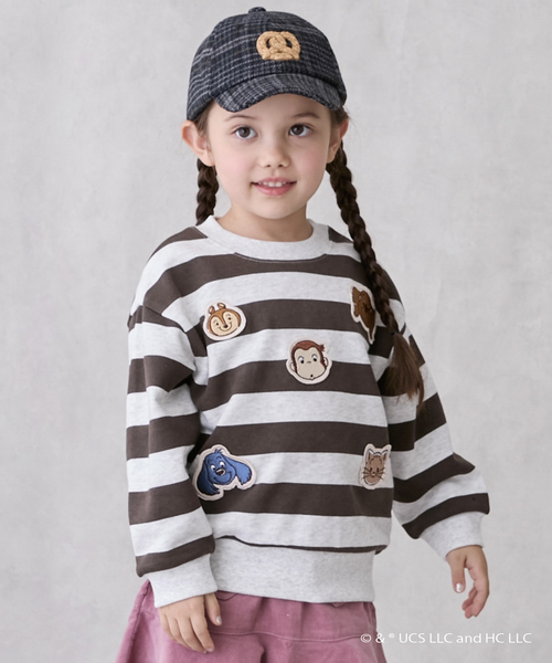 表情豊かなキャラクターのお顔がワッペンになったトレーナーです。シンプルなワンカラーと、配色がかわいいボーダー柄の2パターン展開。コットンベースの素材を使用した裏毛仕様で、肌当たりが良いのも魅力です。お手持ちのボトムとも相性が良く、デイリーに着回しが利きます。内側にお名前を記入できるタグつき。【透け感】透けない【生地の厚さ】普通【伸縮性】あり【裏地】なし【ポケット】なし