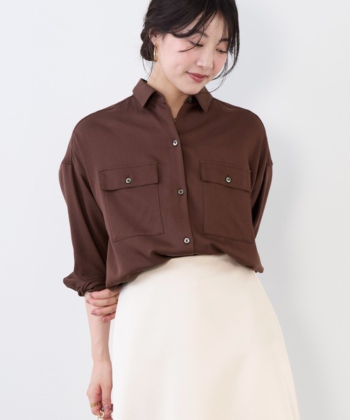 MICA&DEAL定番人気のミリタリーシャツを素材を変えて登場!程よく肉感のあるのシャツなので羽織り感があり、長いシーズンに着回しやすいアイテムです。落ち感だけではなく適度なハリもあるので、体のラインを拾わずニュアンスのあるシルエットが生まれます。シワも気になりにくいアイテムです。【fabric】毛羽の少ないセルロースのモールスキン生地を使用しています。モールスキン組織は平織などのシャツ生地よりも程よく肉厚になり、滑らかな肌触りが特徴です。バイオ加工を施した生地なので毛羽が少なく、ラフさを残しつつキレイな表面感が魅力の素材です。--------------------------------------透け感:OFF WHITEのみややあり裏地:なし伸縮性:なし光沢感:ややあり生地の厚さ:普通--------------------------------------水洗い可*詳しくは商品の洗濯表示にてご確認をお願い致します。【coordinate】キレイな表面感の素材にミリタリーテイストのディテールのシャツなので、カジュアルにもスカート合わせで女性らしくも着こなせます。前を開けて羽織としても。着回しの利く一枚です。*商品画像はできる限り実物の色に近づけるよう徹底しておりますが、お使いのデバイスのモニター設定、お部屋の照明等の閲覧環境により実際の色味と異なって見える場合がございます。*画像の商品はサンプルです。実際の商品と仕様、加工が若干異なる場合があります。予めご了承くださいませ。▼商品のお気に入り登録お気に入りアイテムの値下げ・再入荷・在庫1点などの通知を受け取ることができます。 ▼ブランドのお気に入り登録新商品や再入荷、クーポン配布などのお得な情報を受け取ることができます。
