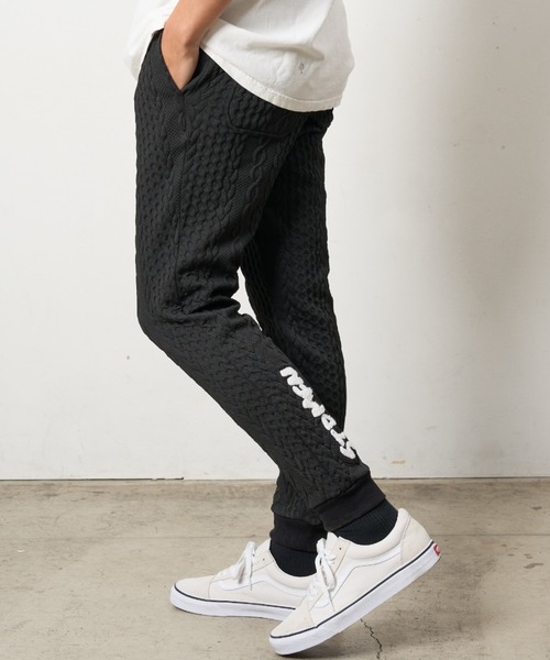 フィッシャーマンニットのようなジャガードニットジャージーを使用したリブパンツ。しっとりしたストレッチ素材でノンストレスで着用可能。バックの左サイドに"STDMFN"、バックポケットに"SUMILEY"をSTUD MUFFINシグネャーのサガラ刺繍で配置。フロントの左ポケット口にはハートワンポイント刺繍を施すことでアクセントに、なっています。STUD MUFFIN/スタッドマフィン「STUD MUFFIN」とは、種馬的、かっこいい男という意味。リスペクトミュージシャンやアーティストからインスパイアした音を感じるシーズンテーマを置きエンブロイダリーやオリジナルのグラフィックを駆使したキャッチーでクールなリアルクローズを提案するエイジレスブランド【お買いものをお楽しみいただく為に】▼商品のお気に入り登録完売カラーの再入荷通知や、ラスト1点の通知、セールの通知も受け取ることができます。▼ブランドのお気に入り登録新商品や再入荷など、いち早くブランドのお得な情報を受け取ることができます。