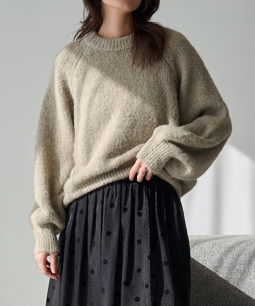 シーズンムードを盛り上げるふんわりニット■design【meilmada別注】ふんわりとボリュームを持たせた、女性らしいシルエットが魅力のニット。ラグランスリーブにすることでカジュアルさもプラスしました。シンプルなデザインながらも立体的な袖のラインで、コーディネートに程よい華やかさをプラス。前後差のある裾ラインは、アウトでもインでもバランス良く着こなせます。■material少し起毛感のあるふっくらとした風合いの糸を使用。やわらな着心地でストレスフリーに着用いただけます。透け感:なし伸縮性:ありポケット:なし裏地:なし■styling程よいボリュームシルエットがシンプルなボトムと相性◎ ワイドシルエットのパンツやロングスカートともバランスよく、シルエットに立体感をプラスします。スニーカー合わせでこなれ感を、ブーツを合わせればシーズンムード高まる着こなしに。【ブランド情報】meilmada毎日が豊かになる洋服を。移り行く時代の中でトレンドを取り入れ、常に新しいスタイルを提案していきます。@meilmadaインスタオフィシャルアカウントにて新作更新中!【必ずご確認の上、ご検討ください】※商品画像・動画は撮影時の光や角度、お使いのモニター環境により実物の色味と異なって見える場合がございます。 商品の色味は、商品単品画像をご参照下さい。※サイト上のカラー・サイズ表記と商品タグのカラー名・サイズ名が異なる場合がございます。※着用、お取り扱いの際は商品についておりますアテンションタグ、洗濯ネームを必ずご確認ください。※生産時期により、色・素材・サイズ感など多少異なる場合がございます。※商品によっては、繊維や染料のにおいが感じられる場合がございます。数日のご使用や陰干しなどで匂いはほとんど感じられなくなりますのでお試しください。※通販の特性上、到着時には畳みシワがついている場合がございます。【Information】《お気に入り登録》がオススメ・「商品のお気に入り登録」で再入荷通知や、ラストの通知、セール通知も受け取ることが出来ます。・「ブランドのお気に入り登録」で新商品や再入荷など、お得な情報を受け取ることが出来ます。※ご注文いただいた予約商品のお届け時期の確認は、注文履歴ページより行えます。※他のキャンペーンにより、期間中に価格が変動する場合があります。※セールは予告なく終了させていただく場合もあります。