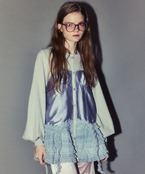 上品な光沢感のあるマットサテンのビスチェをドッキングしたカーディガン。 ニット部分はふんわり柔らかな編み地で着心地◎。 裾に向かってレースを重ねてボリュームを持たせることでウエスト・腰回りをカバー。 袖口はリブ仕様、袖はボリュームを持たせたパフスリーブに仕上げました。 ショート丈のボトムはもちろん、フレアパンツやデニムとの組み合わせも◎ トレンド感のあるガーリーな着こなしにぴったりです。 ・ ・・・・・・・・・ ・・・・・・・・ ・透け感:なし ・伸縮性:あり ・生地の厚さ:普通 ・裏地:なし ・ ・・・・・・・・・ ・・・・・・・・ ・ライトピンク、ライトグレー、ブラック/黒の3色展開 【サイズ展開】 ・FREE(フリーサイズ) #カジュアル#ガーリー#ニット#カーディガン#レース#ビスチェ風#キャンスト#キャンスパ#CND ●Candy Stripper/キャンディストリッパー● -BRAND CONCEPT- NO RULE, NO GENRE, NO AGE 年齢や性別にとらわれず、自由に自分を表現出来る服 【お買い物をもっとお楽しみ頂くために】 ▼商品のお気に入り登録▼ 完売カラーの再入荷通知や、ラスト1点通知、 プライスダウンしたセール通知も受け取れる♪ ▼ブランドのお気に入り登録▼ 新作や再入荷等、いち早くブランドのお得な情報が受け取れる♪
