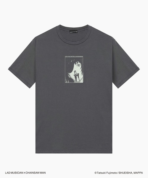 『チェンソーマン』と LAD MUSICIAN による初のコラボレーション劇場版『チェンソーマン レゼ篇』公開を記念して制作するスペシャルコレクションです。キャラクターの表情をより一層強調する為に、あえてモノクロに置き換え、目の光や陰影、シワなどを再構築したグラフィックをプリントしています。オリジナルの天竺素材を使用したビッグTシャツ。自然で上品な光沢と目の立った美しい表情、タフでありながらしなやかな風合いも兼ね備えた、贅沢な素材に仕上げています。肩線から後ろネックにかけては、タコバインダー仕様でテープ処理を施し、型崩れを防ぎながら耐久性も向上。シーズンを問わず快適な着心地で、長くご愛用いただけます。※着丈は前身頃のサイズを記載しています